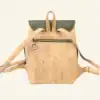 Handgemaakte kurk rugtas in naturel met groen. Lichtgewicht, duurzaam en een vegan alternatief voor leer. Verstelbare schouderbanden en uniek door de natuurlijke structuur van kurk.